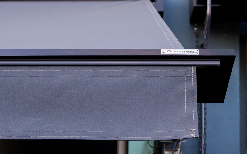 Finished in a refined charcoal grey fabric and detailed with classic valances, each awning was crafted to complement the building’s character while maintaining a timeless, authentic aesthetic. Together, the five awnings provide practical weather protection for the deli seating and entrance, while helping Cinnamon Village stand out on a busy high street. The result is a cohesive frontage that balances heritage craftsmanship with everyday functionality.